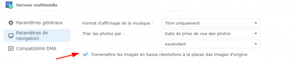 Plus subtil : l'application Serveur Multimédia convertit automatiquement les images en basse résolution selon le périphérique qu'elle détecte sur le réseau. Pour le vérifier et surtout modifier ce paramétrage :