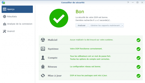 Le Conseiller de sécurité est un outil disponible sur DSM qui analyse régulièrement les paramètres afin de déterminer si des risques existent :