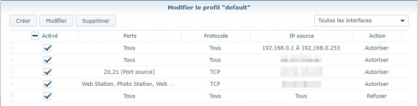 Si vous avez identifié tous les utilisateurs de votre NAS, avec leurs IP de connexion, vous pouvez apporter par cet écran un paramétrage fin pour n'autoriser que ces utilisateurs à pouvoir se connecter à votre machine (en faisant ainsi du "Deny by Default"). Vous pouvez ainsi :