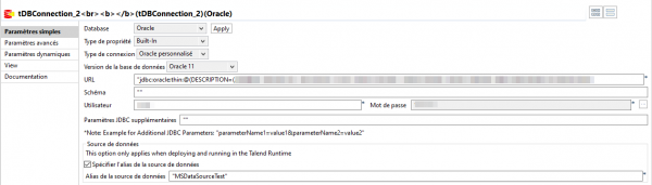 - Ouvrez votre traitement sur Talend, sélectionnez votre composant de connexion à la base (tDBConnection)