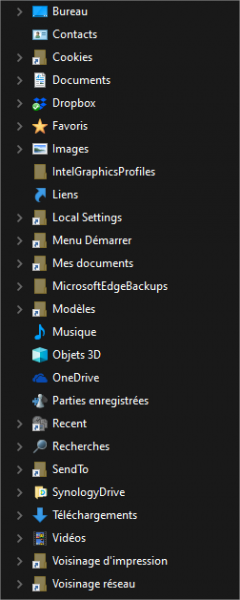 Avec Windows 10, beaucoup de nouveaux raccourcis sont ajoutés (Contacts, Favoris, Images, Liens, Modèles, Musique, Objets 3D, OneDrive, Parties enregistrées, Vidéos, Voisinage d'impression, Voisinage réseau). S'ils vous encombrent inutilement, vous pouvez les masquer ainsi :