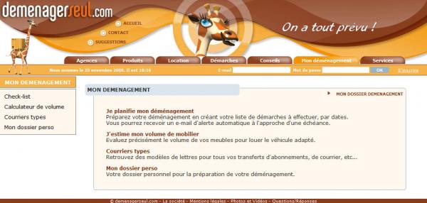 En choisissant dans le menu principal l'option "Mon déménagement", on obtient l'écran suivant :