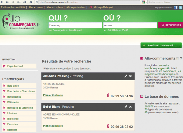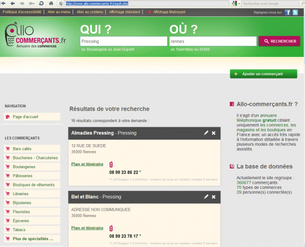Quand on cherche sur un moteur de recherche le numéro de téléphone d'une société, on peut tomber sur différents sites proposant les horaires et téléphones des professionnels, comme celui de www.allo-commercants.fr