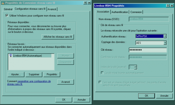 En choisissant cette dernière possibilité, il faut connaître les paramètres à appliquer et Orange ne les donne malheureusement pas. Ni dans la documentation (pourtant très fournie, mais entièrement focalisée vers l'utilisation du logiciel maison et ses quelques clics), ni sur les courriers postaux. Il faut donc chercher un peu, paramétrer manuellement la connexion avec la Livebox : c'est en fait assez simple car le réseau Wifi est trouvé par Windows et le mot de passe (la clé WPA) est écrit sur un autocollant au dos de la Livebox.
