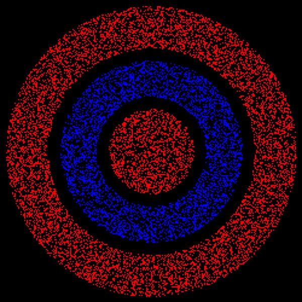 Certaines personnes voient les cercles rouges devant le cercle bleu et d'autres l'inverse.
