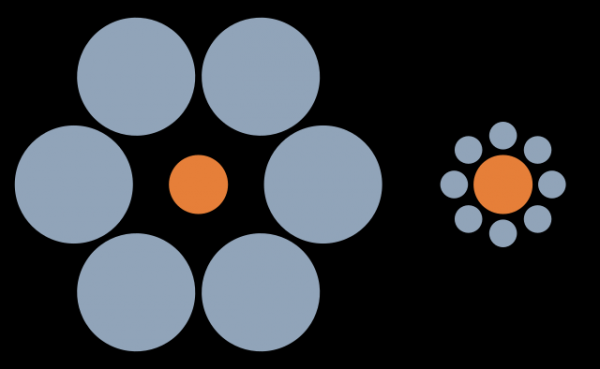 Fixer le centre de l'image et trouvez, de ces 2 figures, lequel des 2 cercles rouges est le plus gros ?