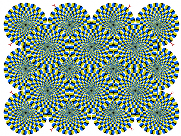 Une autre illusion de Akiyoshi Kitaoka, qui présente 2 cercles de diamètre différents et qui ne se croisent pas.