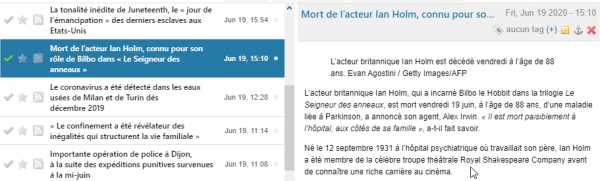 En cliquant sur l'un des titres, le texte complet s'affiche (à droite ou en bas selon votre configuration).