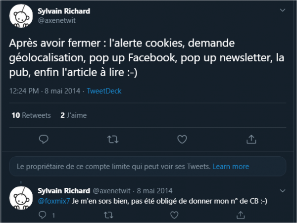 - les nombreuses publicités : paywall, skyscraper, bannière, pop-up, pop-in...