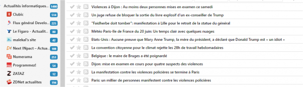 Le logiciel marque automatiquement comme "lu" un article resté affiché quelques secondes, afin de faire ressortir visuellement les articles non consultés.