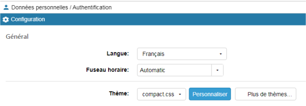 Plusieurs styles sont proposés pour l'affichage de Tiny Tiny RSS, accessibles via le menu Configuration puis Thèmes. Vous pouvez modifier le thème existant (bouton Personnaliser) ou changer le thème actif.