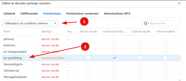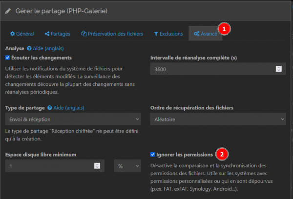 - Sur l'onglet "Avancé", sur Synology, vérifiez que la case "Ignorer les permissions" est bien cochée, afin d'éviter de supprimer des droits.