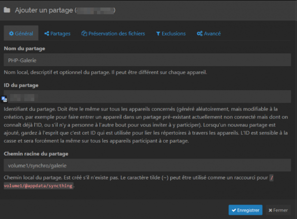 - Vous êtes maintenant invité à créer la destination de ce nouveau partage mais avec comme identifiant celui créé sur la 1ère machine, afin de les synchroniser.