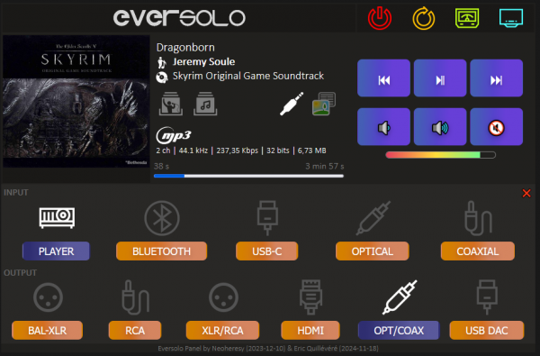 Pour ce projet, je suis parti de l'interface créée par neoheresy, sur audiosciencereview.com, que je trouvais intéressante mais qui n'était qu'en mode envoi. Cette interface ne connait pas par exemple le statut des entrées/sorties ni le titre actuellement joué :